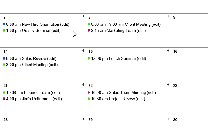 CalendarWiz expands as you grow. Start with a room or facility booking, later add calendar categories for promoting events on your website. Easy to customize the full calendar or upcoming events list to match your website. For more on how CalendarWiz can help your organization, contact our support team – we're happy to help.